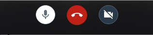 Nella parte inferiore della finestra della conferenza, i tre pulsanti principali si trovano al centro. Microfono, riattacca e telecamera. Cliccando sul ricevitore rosso si termina la partecipazione alla conferenza. Il tasto „Microfono“ (a sinistra) accende e spegne il microfono, il tasto „Camera“ (a destra) accende e spegne la fotocamera. Quando sono spenti, i simboli vengono barrati. Nello stato attivo sono riempite di bianco.